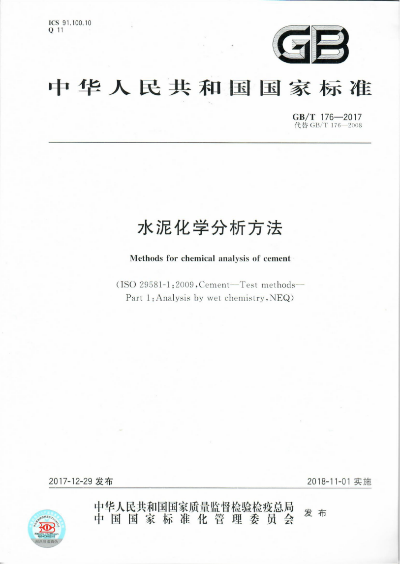 GB/T 176—2017 水泥化学分析方法